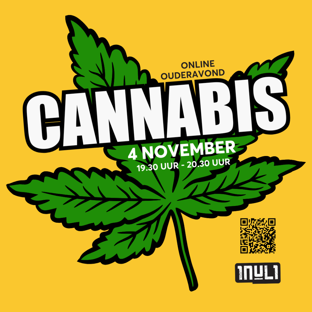 1NUL1 geeft 4 november a.s. een online ouderavond over cannabis. De ouderavond is van 19.30 uur tot 20.30 uur.